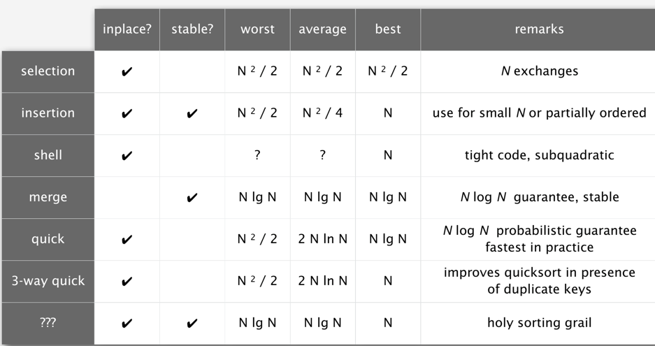 - 有些时候不同的排序算法适用于不同的场景,都应该能够知道什么时候用什么